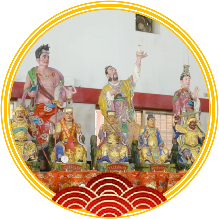 本殿另祀:關聖帝君、關平太子、周倉將君、九皇星君、廿八星宿神君、十二宮神與六十甲子太歲等,堪稱全台首座專祀北斗眾星之神聖殿堂。
