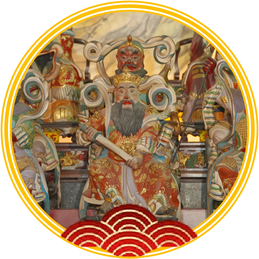 東嶽大帝主掌人魂魄,掌理人死生,職司人生命的長短,執掌人間福祿、壽考、災禍等事,管理十八重地獄,六案簿籍,七十五司生死之期。