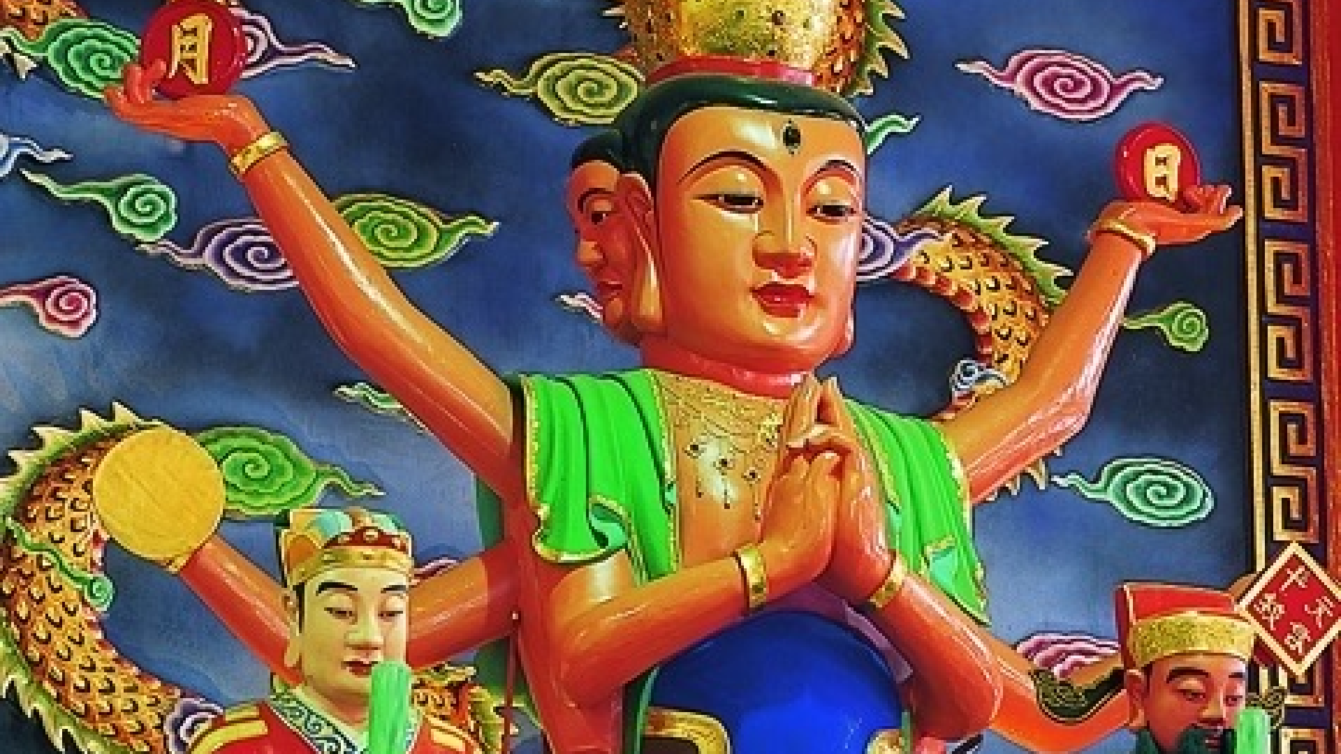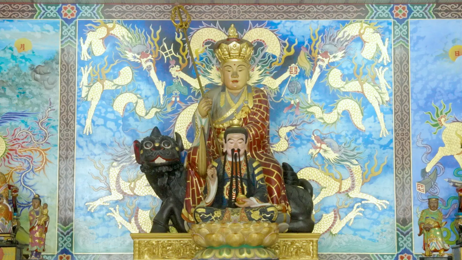 「地藏王菩薩」為佛教大慈悲菩薩的代表,菩薩曾發大誓願,在釋迦寂滅後,到彌勒佛出世前的無佛世界中,化導沉迷五濁的世間眾生。地藏王菩薩手持法杖,身騎靈獸為坐騎,左耳聽天,右耳聽地,辨音聞聲救苦,接引十方魂魄,渡化六道眾生。祂立下宏願,「眾生渡盡,方證菩提,地獄不空,誓不成佛」,世人尊稱祂為「幽冥教主」。