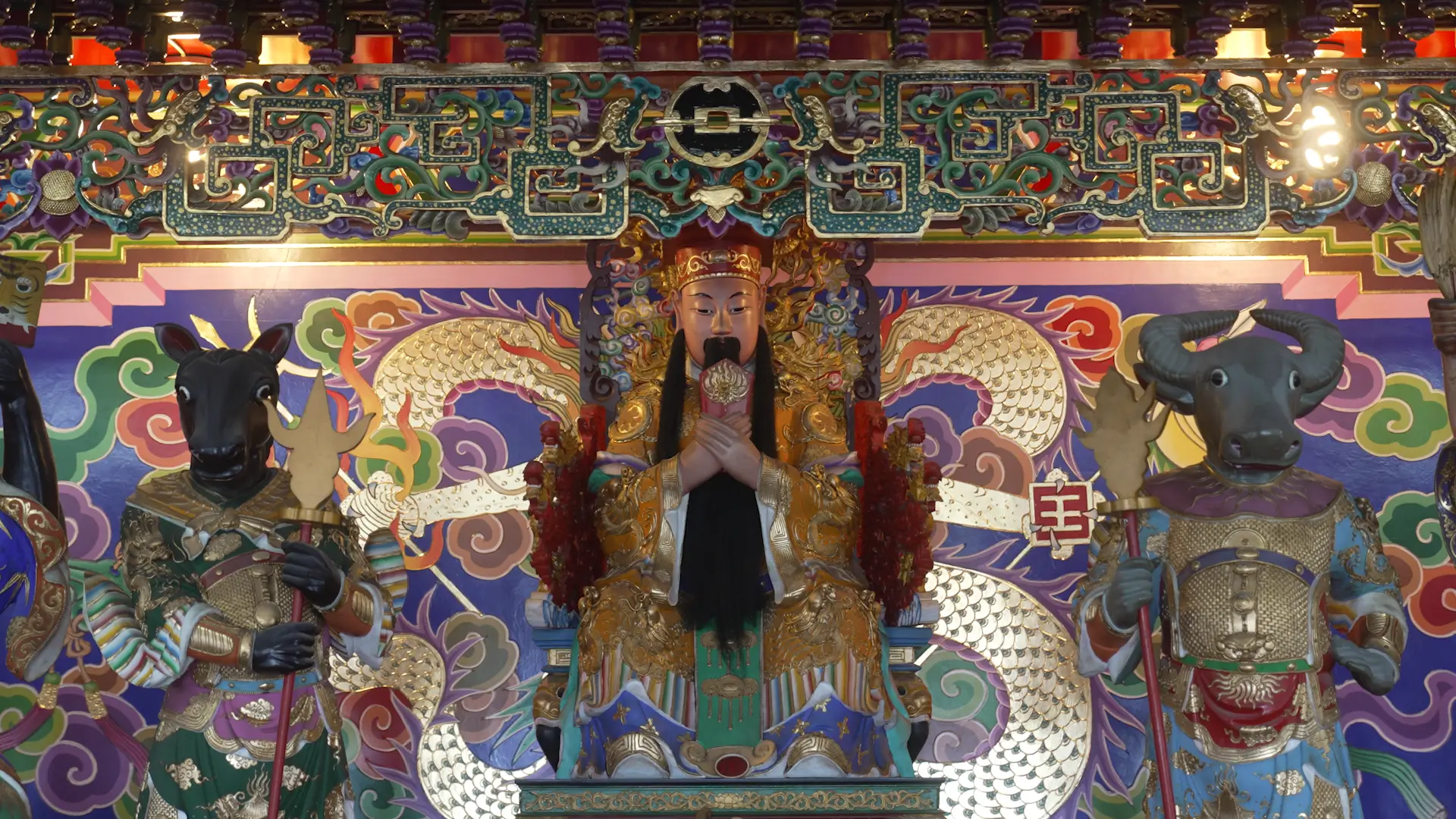 奉祀主神為「東嶽大帝」,旁祀酆都大帝、城隍爺、牛頭將軍、馬面將軍,還有頭戴「一見大吉」白臉、長眉、吊眼、吐長舌,人稱七爺的白無常「謝必安」。以反左手持虎牌,右手鎖魂鍊,黑面、闊嘴、獅鼻,人稱八爺的黑無常「范無救」。